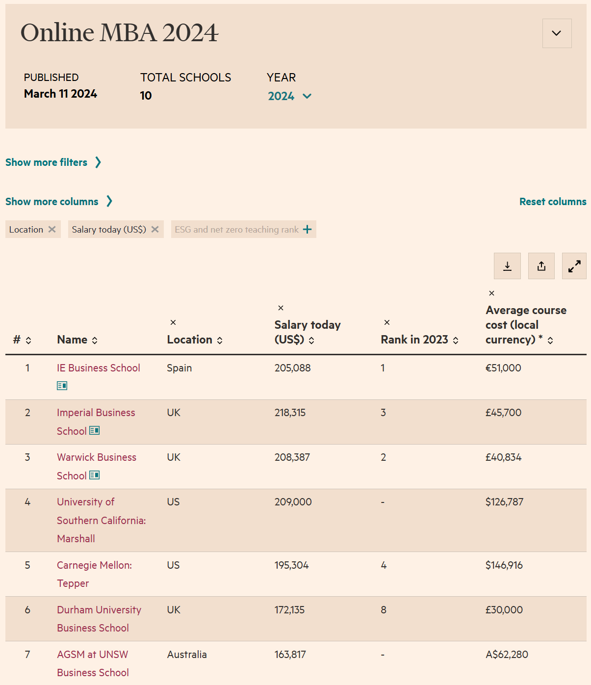 Online MBA 2024 - Business school rankings from the Financial Times - FT.com