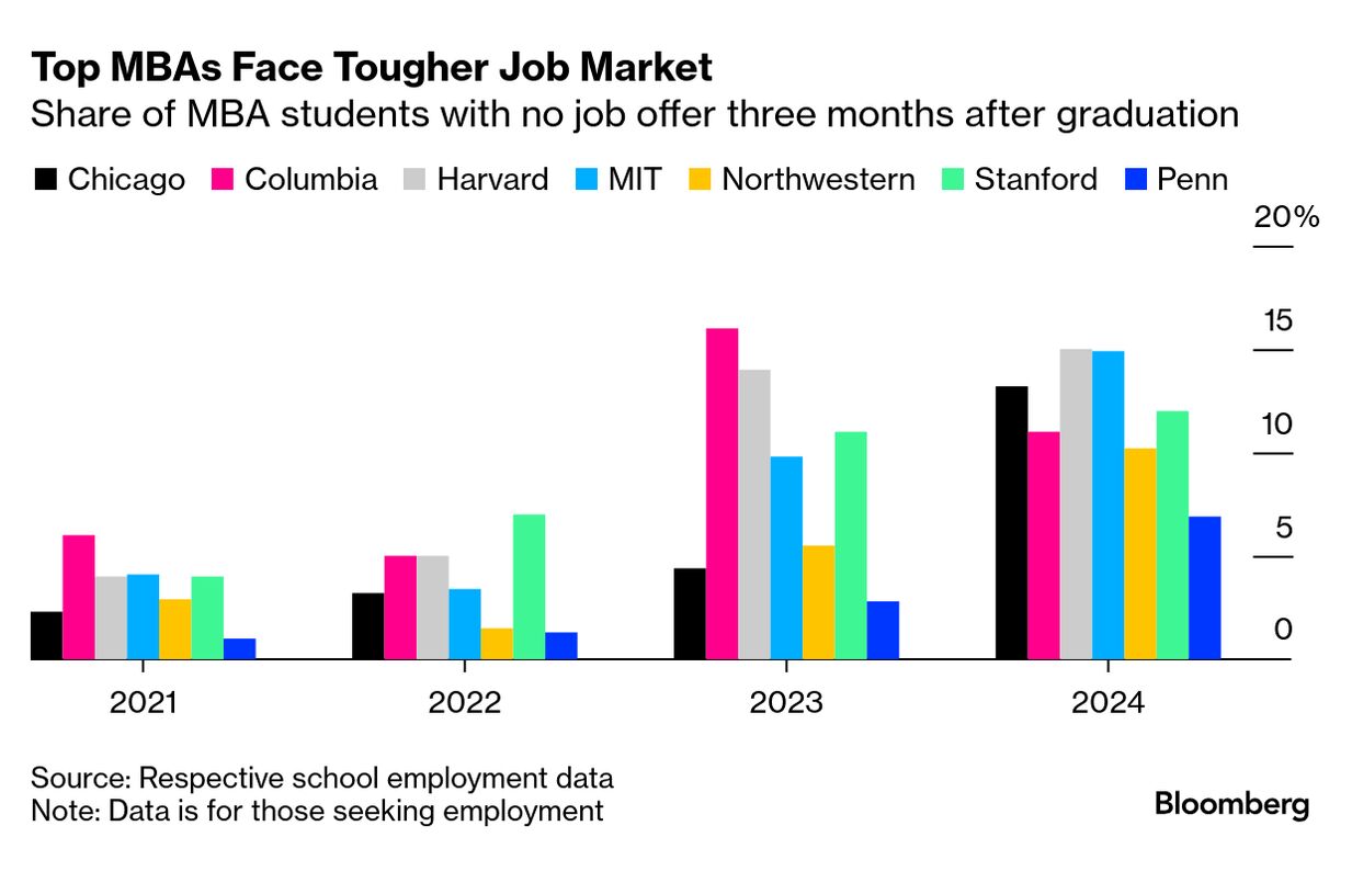 米名門MBA卒業生に就職難の現実、雇用が約束される時代から変化(Bloomberg, 2025)参照。