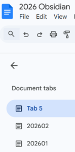 (4) Google documentのタブ機能を使い、月ごとのシートを手動で分けます。